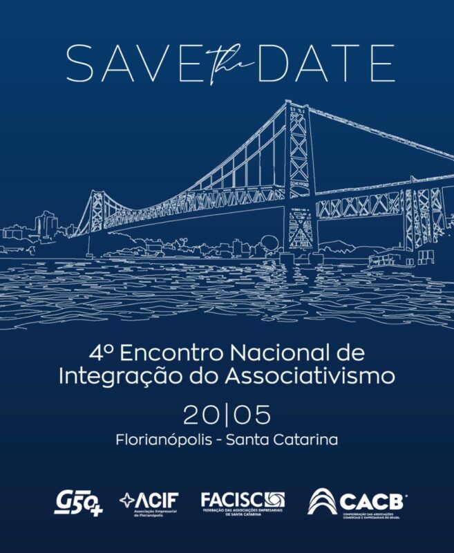 A Confederação das Associações Comerciais e Empresariais do Brasil (CACB) promoverá, no dia 20 de maio, na cidade de Florianópolis (SC), o 4º Encontro Nacional de Integração do Associativismo. O evento ocorrerá a partir das 9h, na sede da Federação das Associações Empresariais de Santa Catarina (Facisc), maior entidade empresarial voluntária do estado catarinense.
